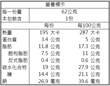 【過敏原】本產品含有含麩質之穀物、牛奶、大豆、蛋及其製品,不適合其過敏體質者使用。