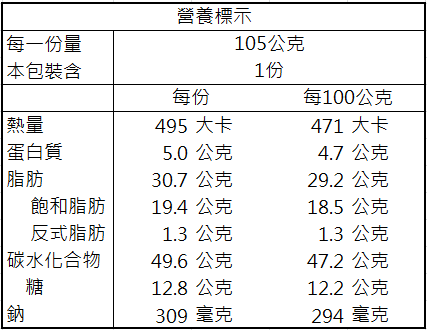 【過敏原】本產品含有含麩質之穀物、牛奶、蛋類及其製品,不適合其過敏體質者使用。