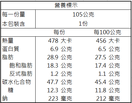 【過敏原】本產品含有含麩質之穀物、牛奶、蛋類及其製品,不適合其過敏體質者使用。