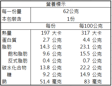 【過敏原】本產品含有含麩質之穀物、牛奶、大豆、堅果、蛋及其製品,不適合其過敏體質者使用。